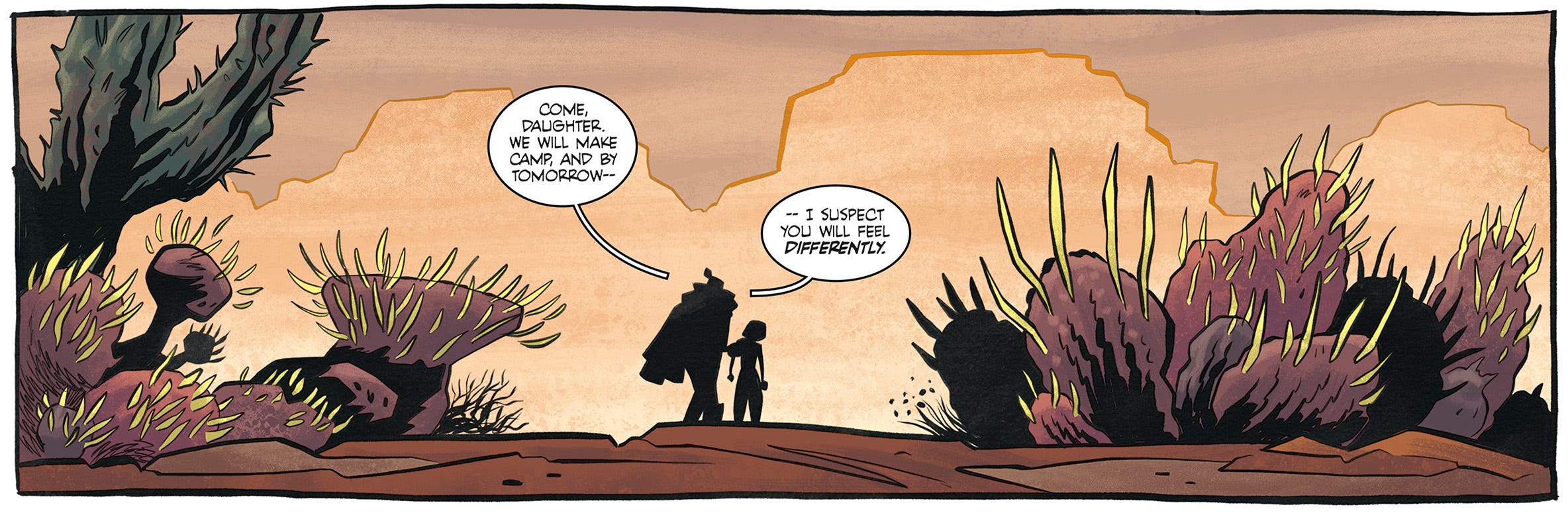 As mentioned up top, the fourth story from our upcoming [MAPS] Graphic Novel Sourcebook is also now in the wild, and takes place in the royal hunting ground of REGA CASKAMPO. We have to tip our ĉapoj to the art team behind it, Juni Ba and Dave Stewart. Tremendous work from all involved, including letterer extraordinaire Rus Wooton.