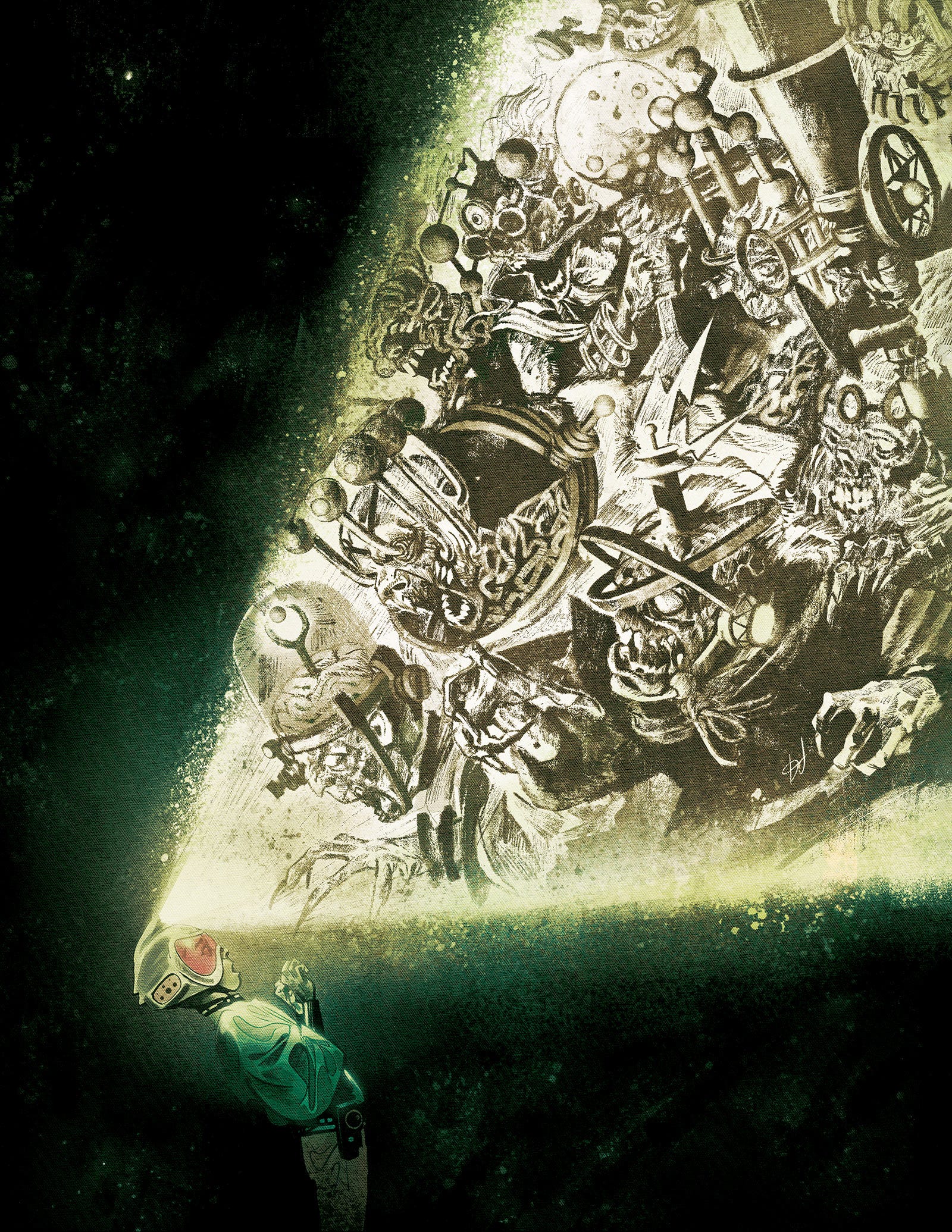 Things get downright dangerous in 3W/3M co-creator Mike del Mundo’s THE VALLARS PREVIEW EDITION variant cover, as young Tajo Vallar shines a light on the things that go bump in the night on Therra.