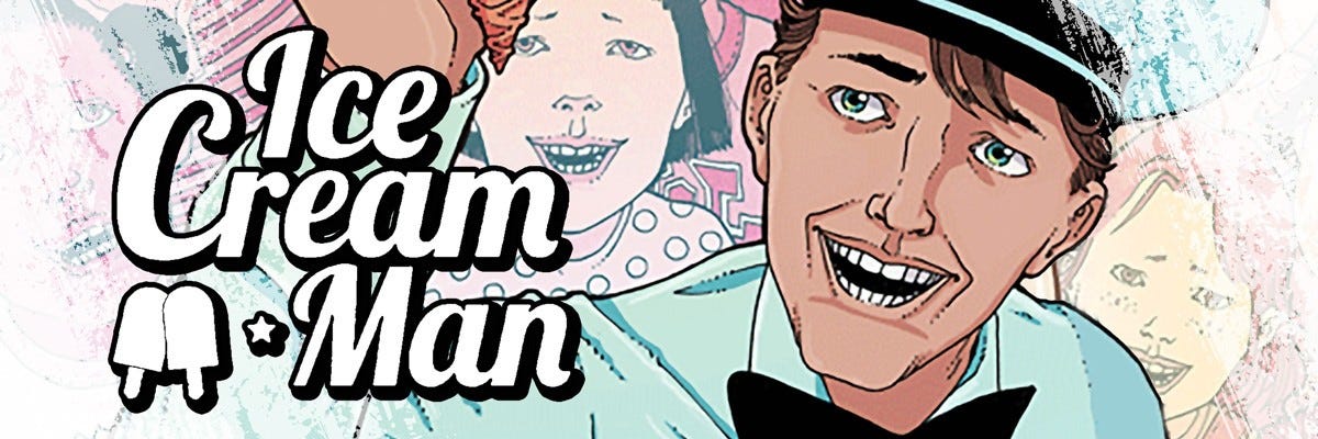 Ice Cream Man is a genre-defying ongoing “anthology” comic that features a new story, new characters, and often a new FORM of storytelling (we’re known for our experimentation) every issue. The one thing holding them together? A mischievous, magical ice cream man named Rick, who could be God, the Devil, or a stray cat come to life. We’re 44 issues in, and we’re hoping our readership helps buoy us to 100!