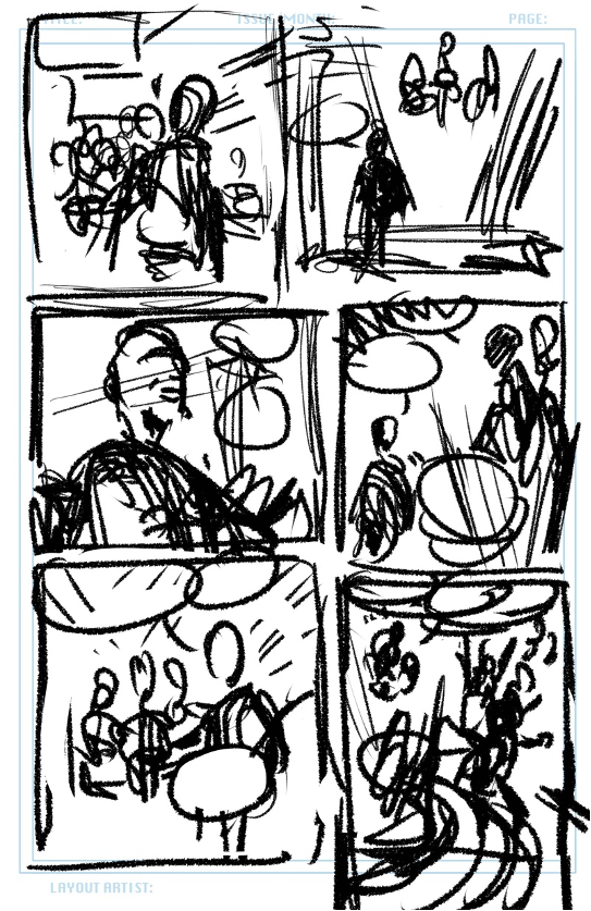 A confession – I usually do not sit down and thumbnail the story before I begin drawing. My general impatience goads me into jumping right in. I know I’m going to change those layouts anyway, and no one is paying me for that layout time! The deadline is fast approaching – get on with it, man!